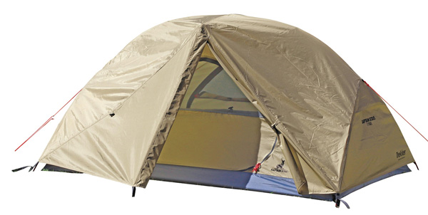 キャプテンスタッグの「UA-61 トレッカー アルミテント2UV(カーキ)」は、初心者の方にもおすすめの吊り下げ式ドームテント。組み立てたポールに「あるもの」を吊り下げるので、設営が簡単です。